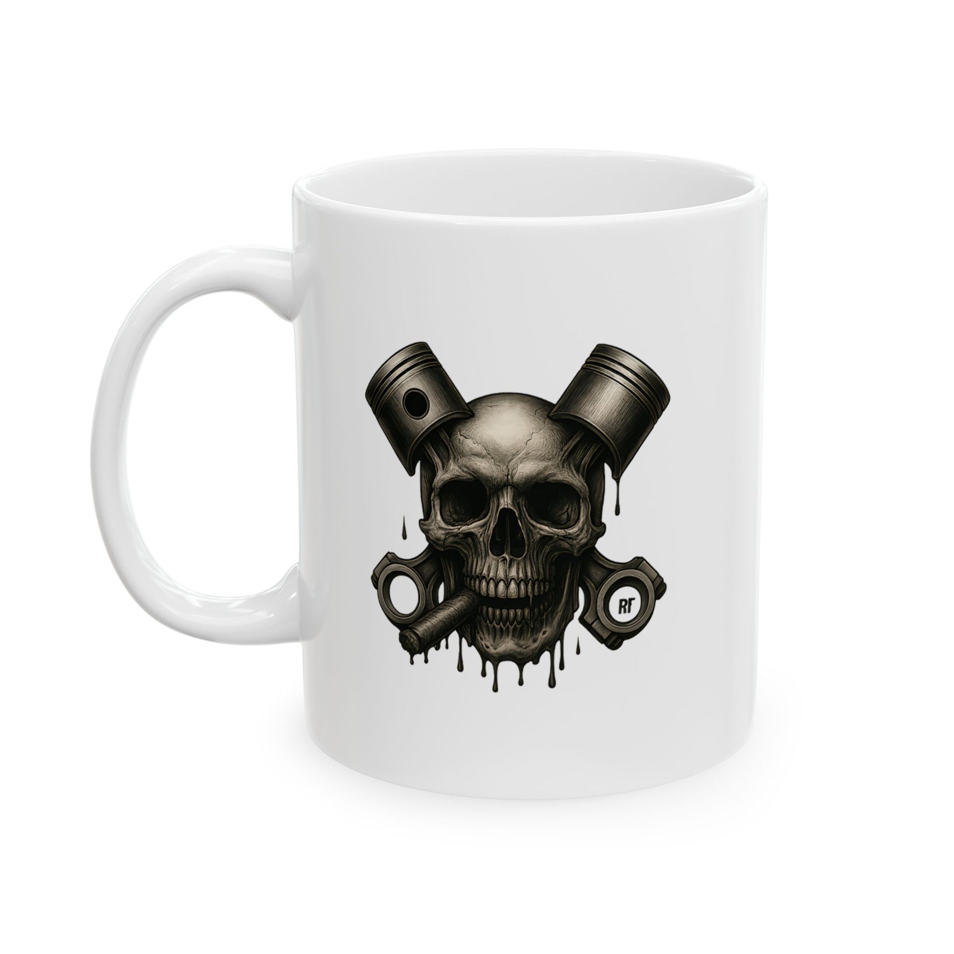 Skull Piston Ceramic Mug | Coffee Cup, Unique Skull Gift, Automotive, Car Mug